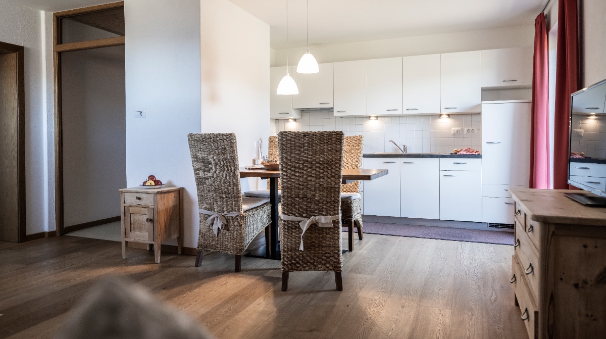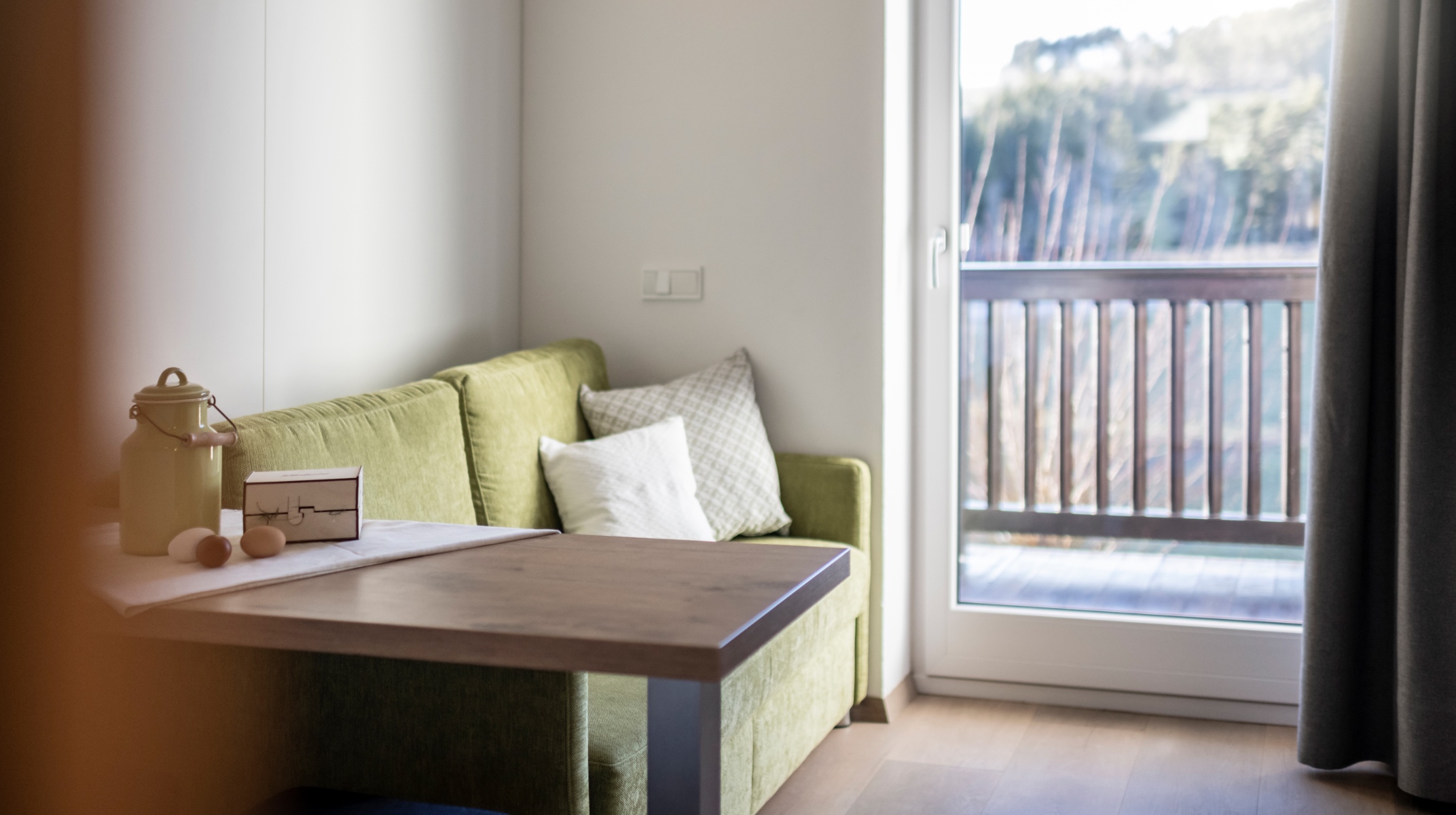 Natürliche Materialien und Farben, Licht und Blick in die Weite: unsere Wohnungen und Zimmer sind in ihrer schlichten Gemütlichkeit eine Wohltat für Auge und Geist. Findet als Familie oder zu zweit Erholung von Hektik und Unruhe und genießt stattdessen die Weite der Berge, das geschäftige Zirpen in den Wiesen, das Rauschen der Wälder und die schmackhafte Vielfalt der Natur.